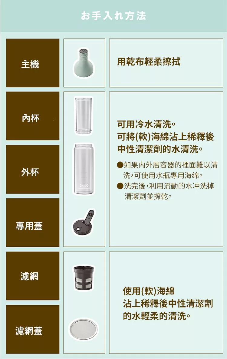 包裝內容 : 主機、外杯、內杯、濾網、濾網蓋、專用杯蓋、專用充電線、中文說明書和保固卡