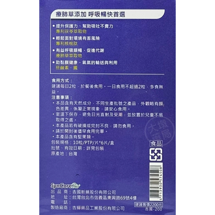 ■ 特添雙專利草本成分-核桃肽粉+茯苓萃取物,幫助清潤補養 ■ 添加療肺草萃取物,幫助呼吸順暢 ■ 有助於黏膜的健康(菸鹼素) ■ 有助於氧氣的運輸與利用(鐵) ■ 全素可食