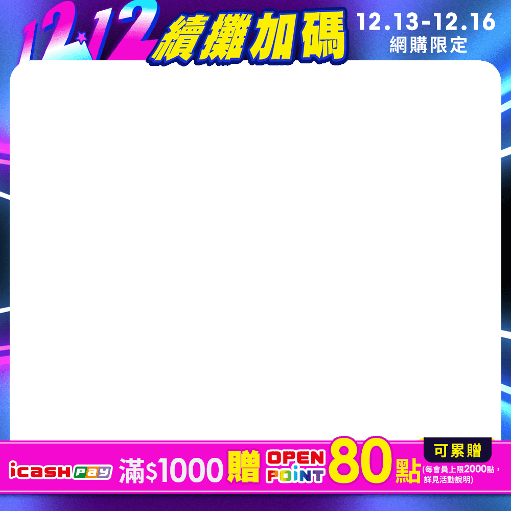 限時加碼12/13-12/16滿$1000贈80點(可累)