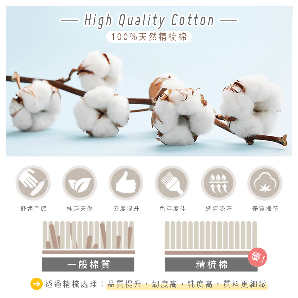 天然精梳棉,極致透氣柔軟