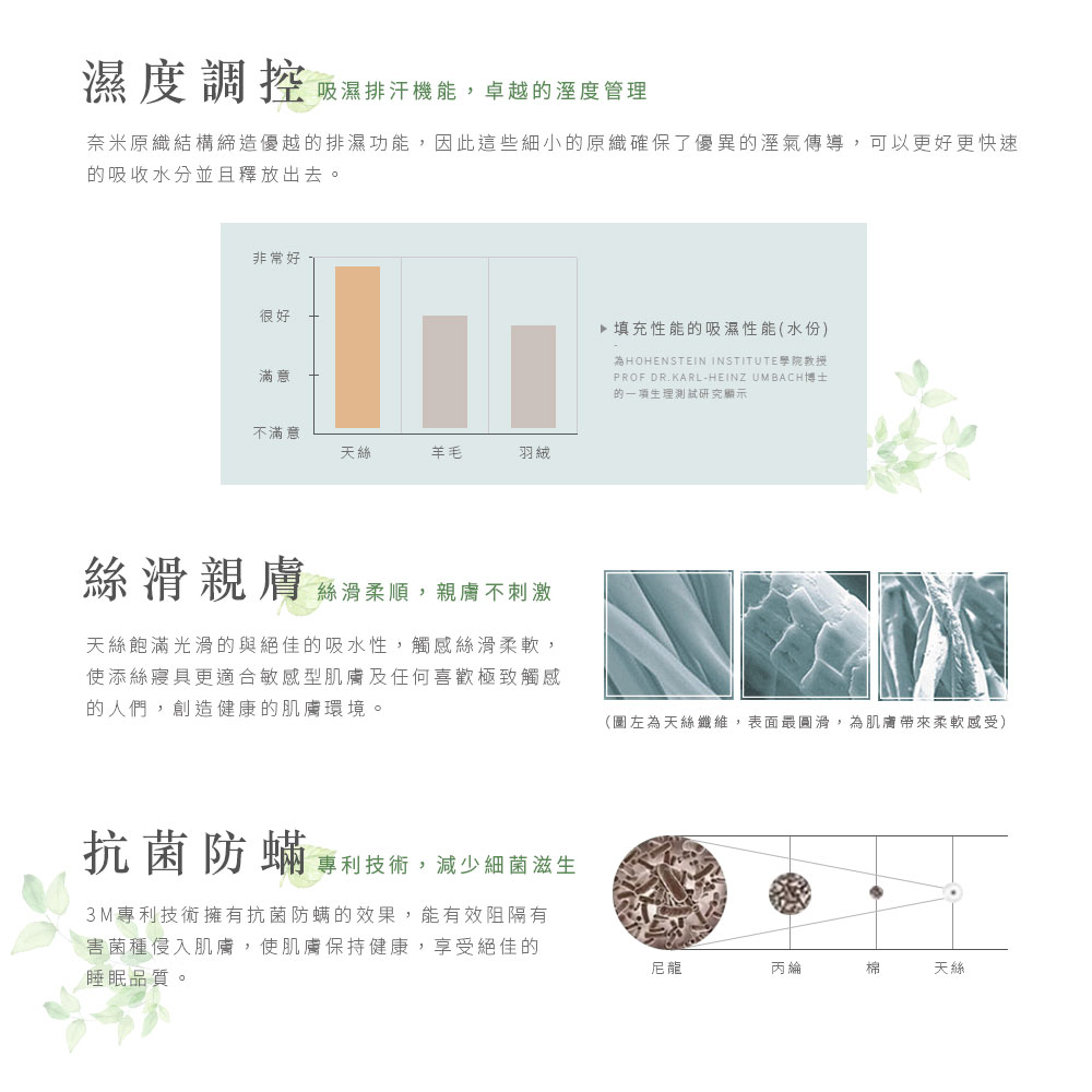 不可漂白、乾洗,並定期日曬達到消毒除溼效果