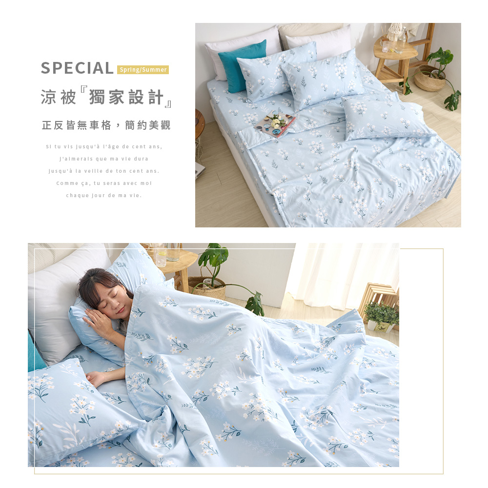 【DUYAN 竹漾】舒柔棉 單人/雙人/雙人加大 床包涼被組 / 鈴藍白華