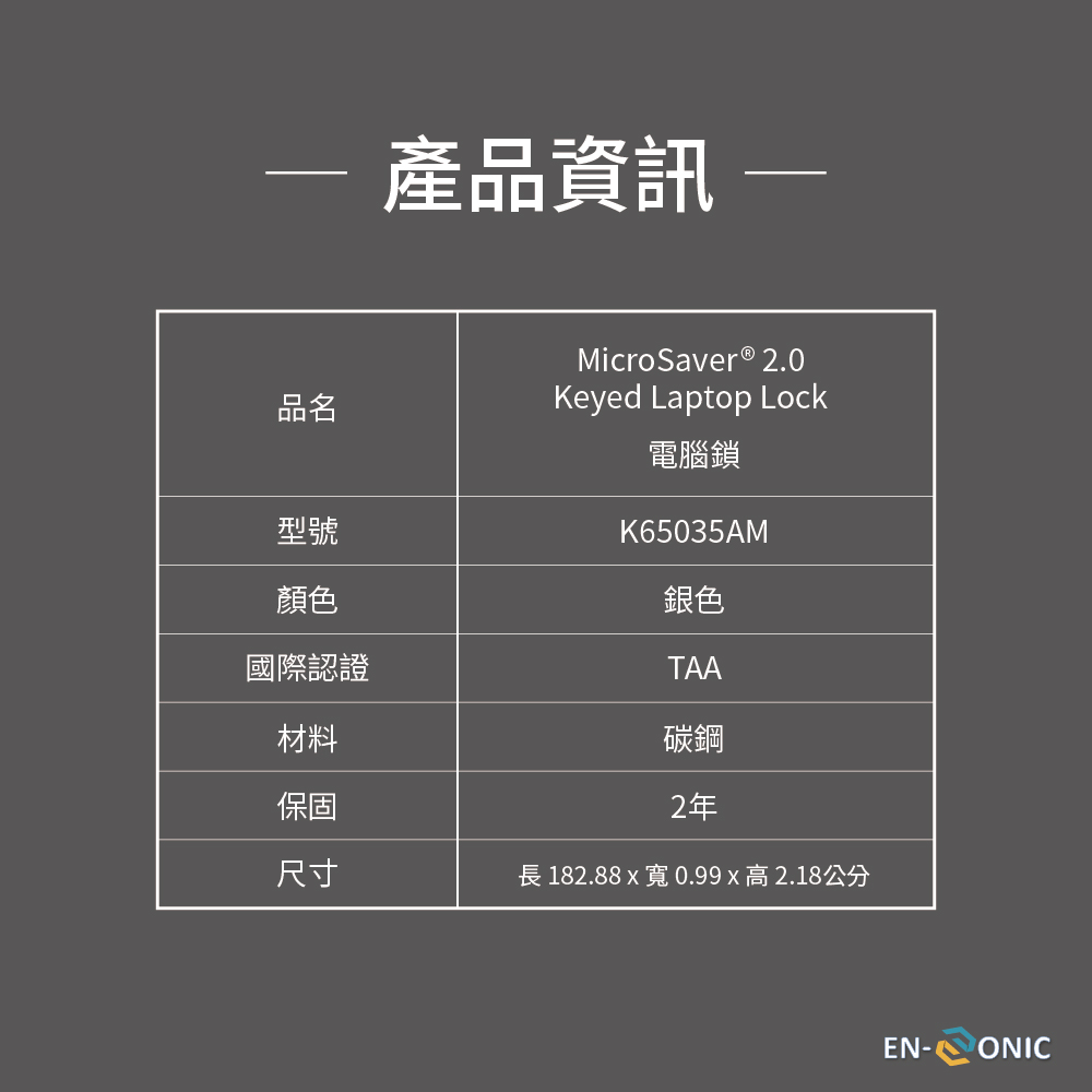 【Kensington】MicroSaver 2.0 筆記型電腦鎖-鑰匙型(K65035AM)