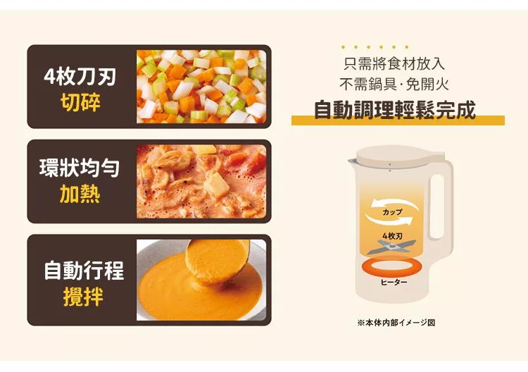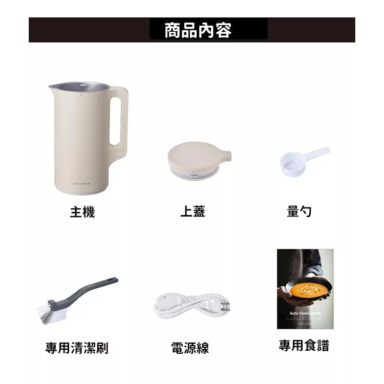 包裝內容 : 主機、上蓋、量匙、專用清潔刷、專用食譜、中文說明書和保固卡