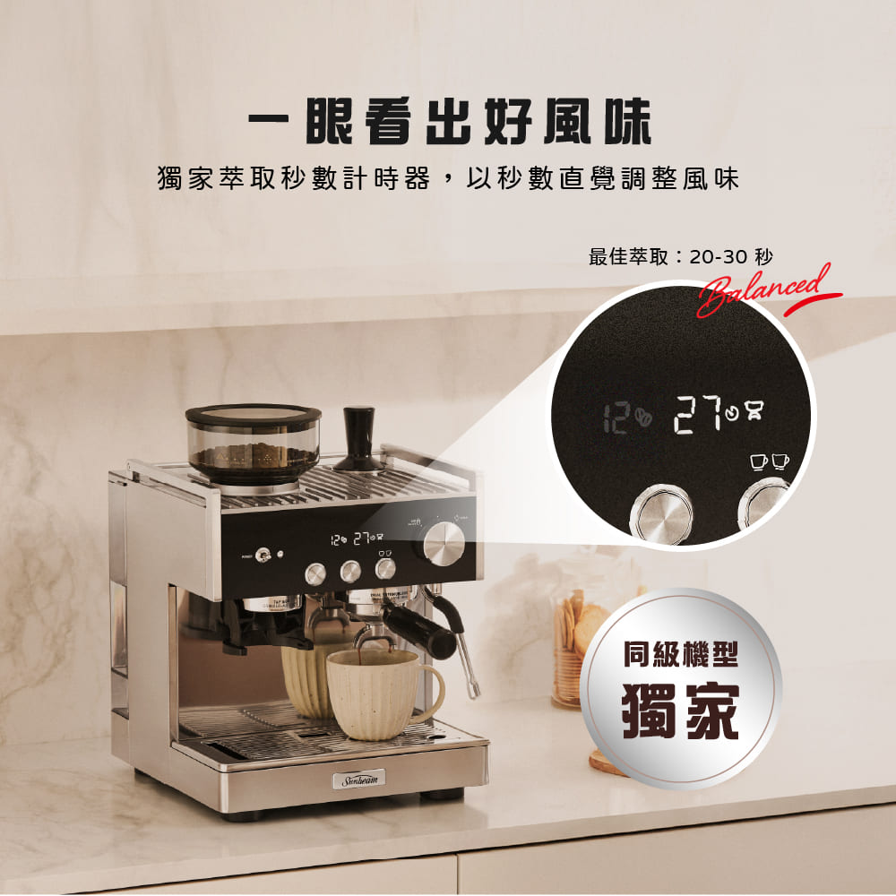 58mm 單層濾杯(單份&雙份)、58mm 雙層濾杯(單份&雙份)、58mm 沖煮把手、58mm 填壓器、460ML 不鏽鋼杯、清潔盤、清潔針、清潔刷
